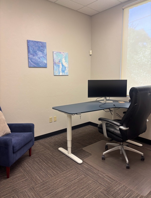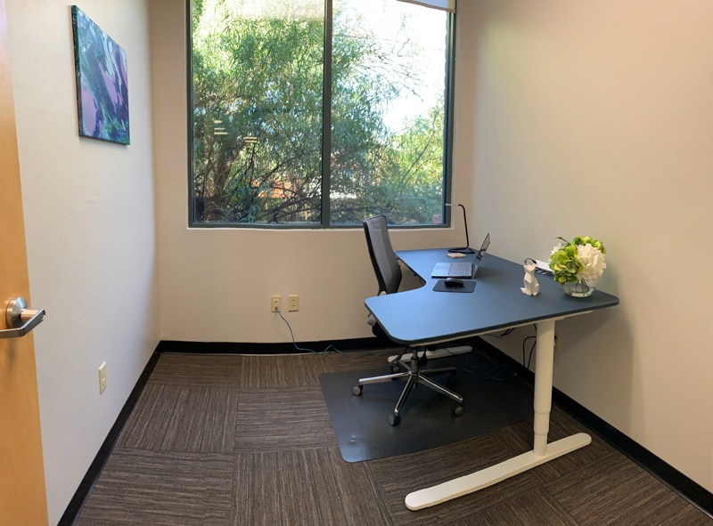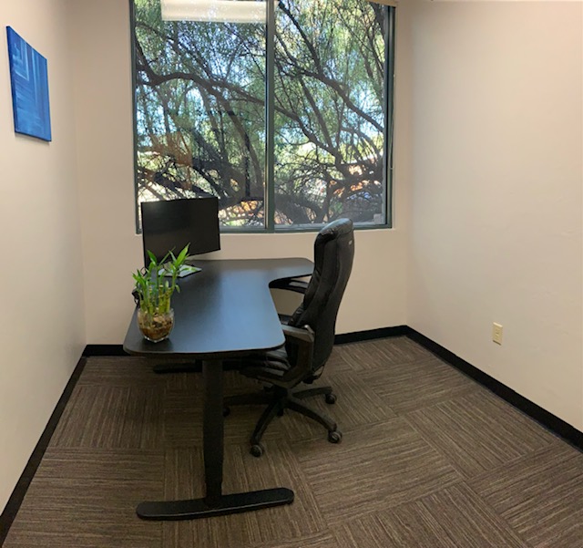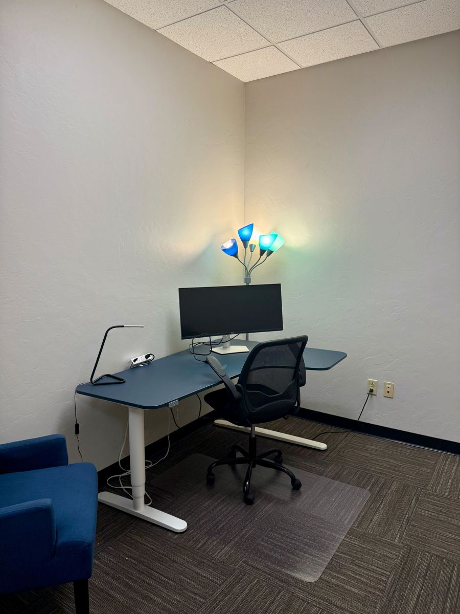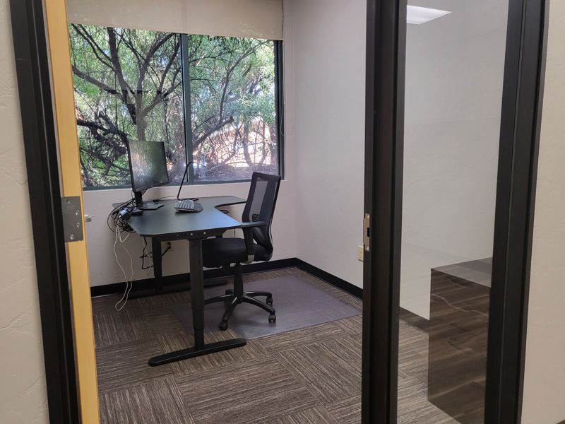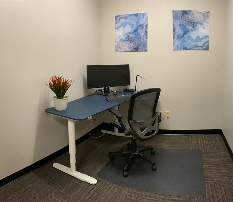 This is a cozy interior suite that offers maximum focus and is a great option for your Google Business listing. It features a sidelight window facing a wide hall, allowing for some interior natural light. It is conveniently located down the hall from our largest meeting space, The Flex Space.